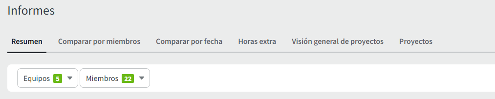 Proyectos: aquí puede ver detalles específicos sobre los proyectos y el tiempo que se ha dedicado a ellos.